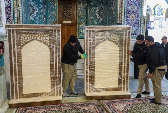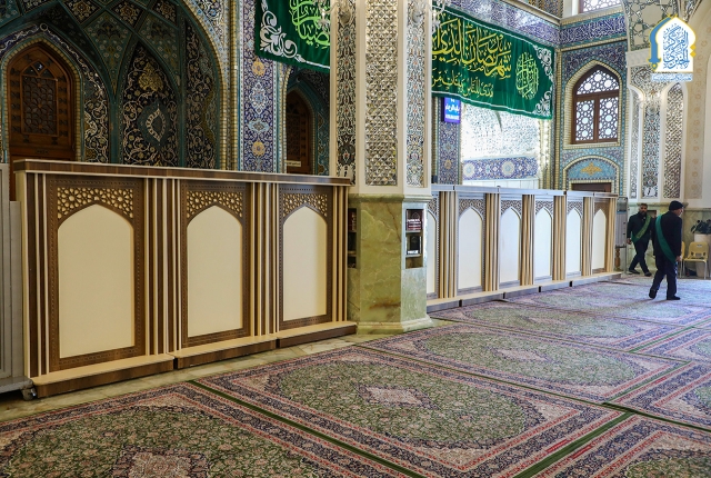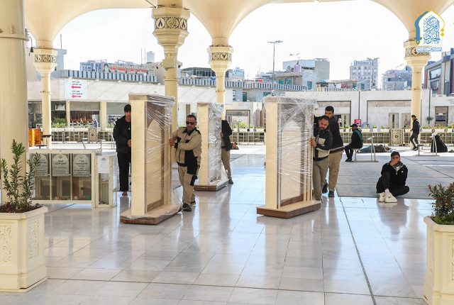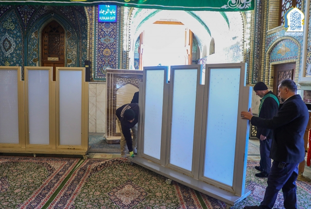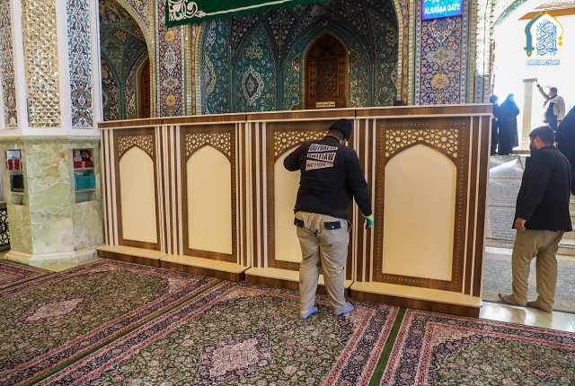 وحدة النجارة والألمنيوم تنصب القواطع الجديدة في أروقة الحرم الكاظمي الشريف