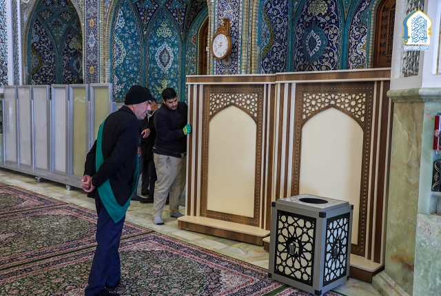 باشر فنّيو وحدة النجارة والألمنيوم التابعة لشعبة الصيانة الكهروميكانيكية في قسم الشؤون الهندسية والمشاريع الاستراتيجية في العتبة الكاظمية المقدسة بتنفيذ أعمال تصنيع ونصب مجموعة من القواطع الخشبية الجديدة داخل أروقة الحرم الكاظمي الشريف.