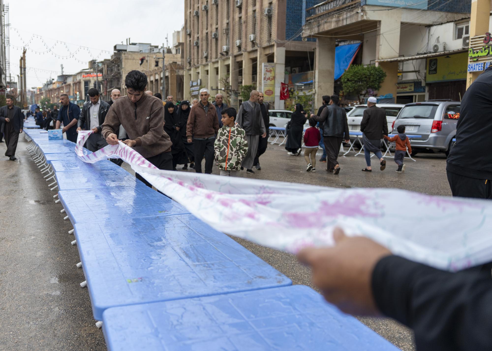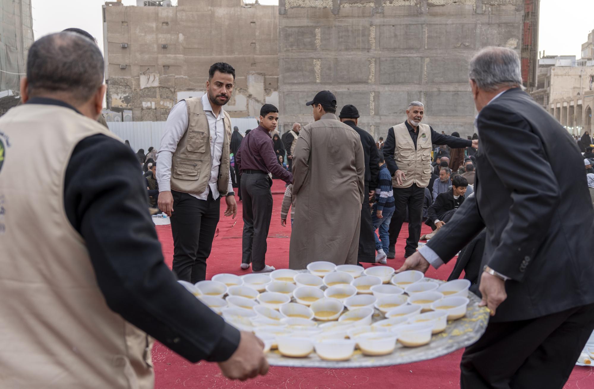 أعلن قسم بين الحرمين الشريفين في العتبة العباسية المقدسة، تقديم أكثر من 50 ألف وجبة إفطار للزائرين خلال شهر رمضان مبارك. وقال معاون رئيس القسم السيد أوس طاهر الفضلي: إنَّ "ملاكات القسم استنفرت جهودها لتقديم أكثر من 50 ألف وجبة إفطار للزائرين طوال أيام الشهر الفضيل، في مختلف المحاور داخل مدينة كربلاء". وأضاف، أنَّ "مناطق التوزيع شملت باب بغداد، وشارع العلقمي، وشارع باب القبلة لمرقد أبي الفضل العباس (عليه السلام)، إضافةً إلى بعض المناطق المحيطة بالمرقد الطاهر، لضمان وصول الخدمة لأكبر عدد ممكن من الوافدين".
