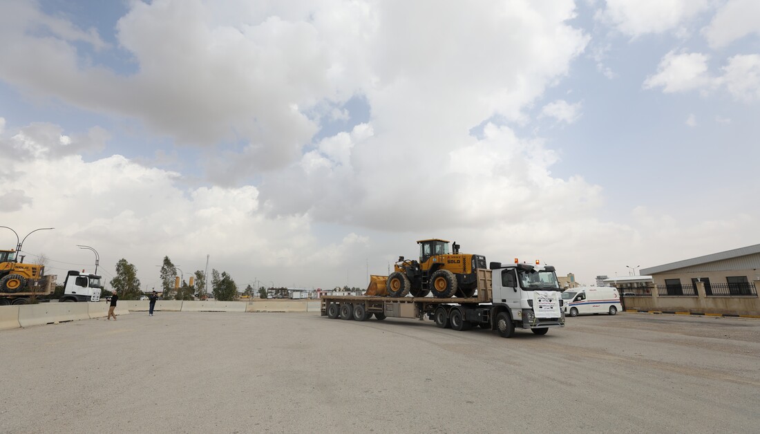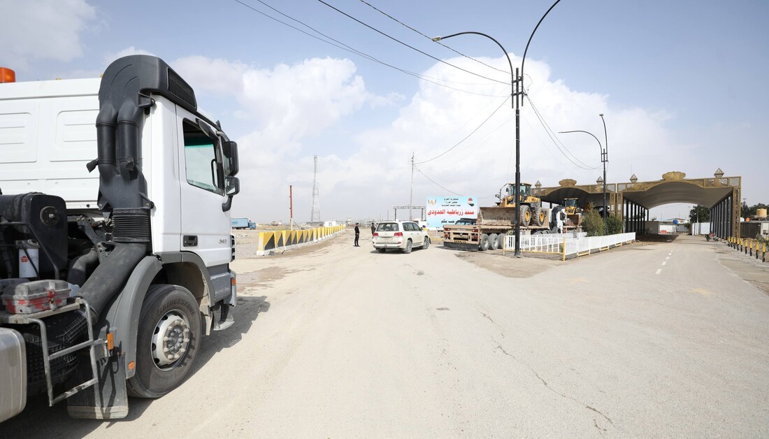 أرسلتها العتبة الحسينية.. شاهد بالصور: دخول قافلة الإغاثة إلى الأراضي الإيرانية