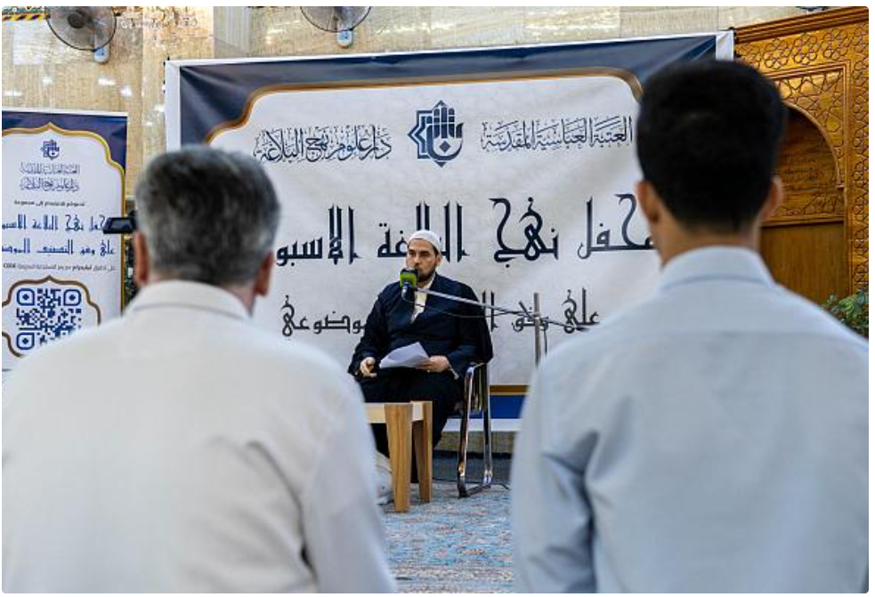 أقامت دارُ علوم نهج البلاغة التابعة للعتبة العبّاسية المقدّسة، محفل نهج البلاغة الأسبوعيّ على وفق التصنيف الموضوعيّ في محافظة كربلاء. وقال رئيسُ الدار الدكتور لواء العطية، إن "المحفل يمثّل حلقةً ضمن مجموعة جهودٍ علميّة تتبنّاها الدار؛ لتوضيح العمق الفكريّ لنهج البلاغة وتقريبه من واقع الفرد والمجتمع"، مشيراً إلى أن "الهدف هو استحضار هذا التراث العظيم، كمنهج عملٍ يوميّ يسهم في رقيّ المجتمع واستقراره الفكريّ، أمام مختلف التحدّيات والمتغيّرات المعاصرة". من جانبه، أوضح مقدِّمُ المحاضرة الشيخ محمد الراشدي، أن "جلسة المحفل تناولت الرسالة 28 من مراسلات أمير المؤمنين(عليه السلام)، التي عدّها الشريفُ الرضيّ من محاسن الكتب لفخامة مفرداتها وقوّة بيانها". وأكّد الراشدي أن "النصّ مثّل ردّاً دقيقاً من الإمام علي(عليه السلام)، كشف فيه عن الدوافع النفسيّة التي جعلت معاوية ينسب لنفسه ما ليس فيه". وأضاف الراشدي أن "المحاضرة استهدفت إسقاط القيم العلويّة على الواقع المعاصر، لا سيّما ضرورة وقوف الإنسان عند حدّه ولا يتجاوزه، إلى جانب ضرورة تعظيم الأولياء والمجاهدين كحمزة بن عبد المطلب وجعفر الطيار(عليهما السلام)".