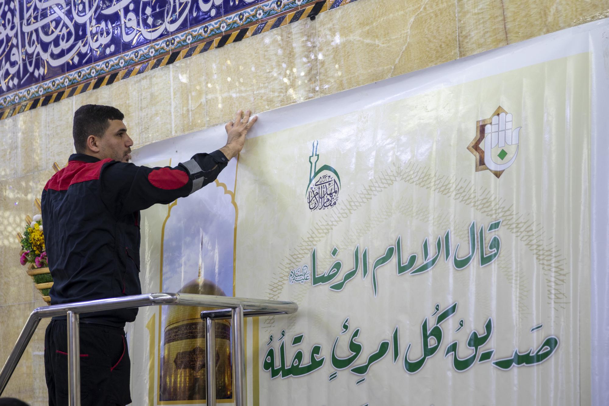قسم المقام ينشر لافتات الفرح بذكرى ولادة الإمام الرضا (عليه السلام)