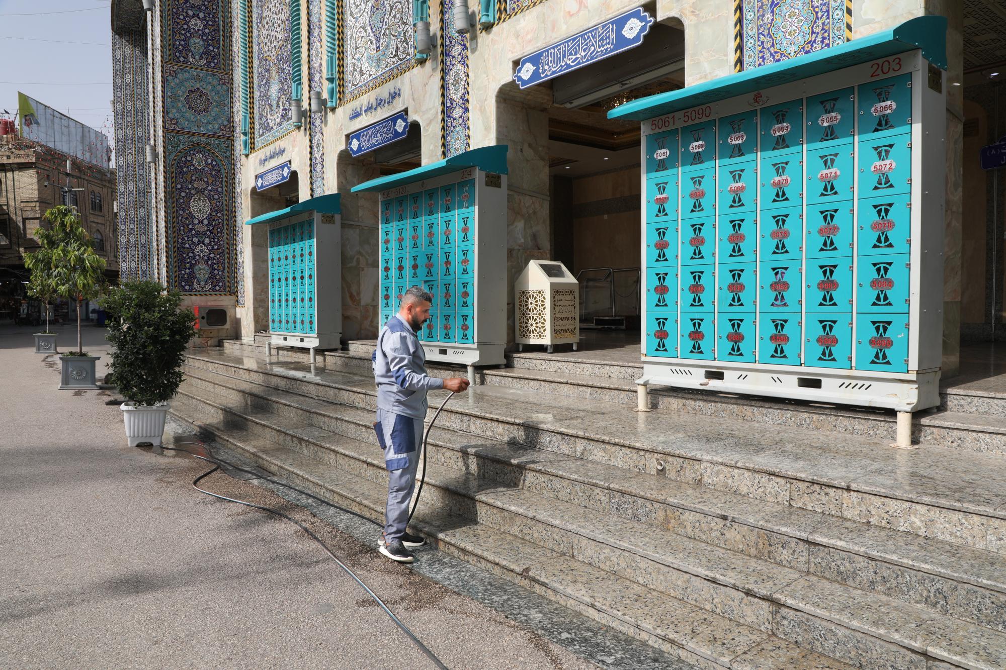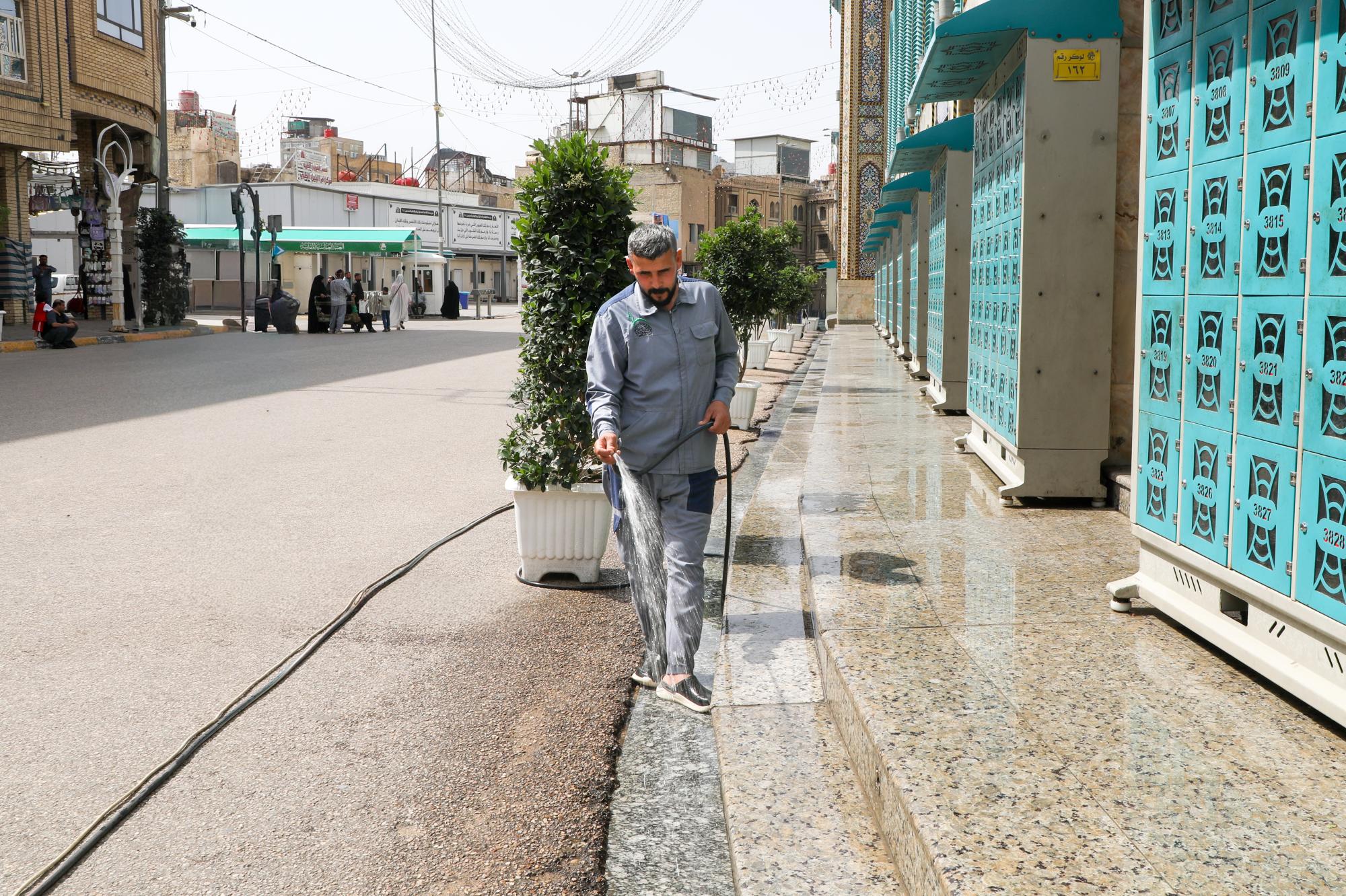 قسم الشؤون الخدمية يجري حملة غسل لمحيط العتبة العباسية المقدسة وتنظيفه