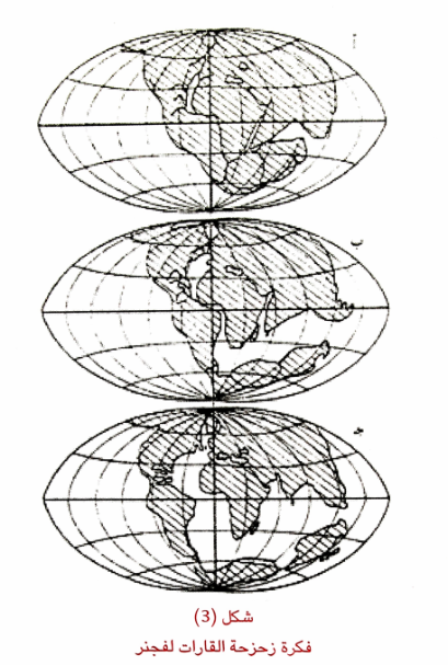 يذهب فجنر في نظريته هذه إلى أن اليابس بأكمله كان عبارة عن كتلة واحدة كبيرة تتجمع حول القطب الجنوبي، وتحيط بها المياه في محيط عالمي واحد من جميع الجهات، وإبان العصر الفحمي من الزمن الجيولوجي الأول (زمن الحياة القديمة) تعرضت هذه الكتلة لعوامل الانكسار والانشطار، وأخذت أجزاؤها تتحرك متباعدة عن بعضها في غضون العصور الجيولوجية التالية حتى استقرت في مواضعها الحالية (شكل3).