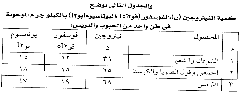 3- في العادة لا تضاف الأسمدة العضوية تحت محاصيل الحبوب القرنية فيما عدا (فول الصويا – الفاصوليا) فإنهما يتجاوبان جداً مع الأسمدة العضوية وتزيد من إنتاجهما كما يلى:
