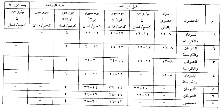 1- يضاف كمية من الاسمدة الفوسفورية والبوتاسيومية قدرها 18-24 كجم (مادة فعالة) للفدان.